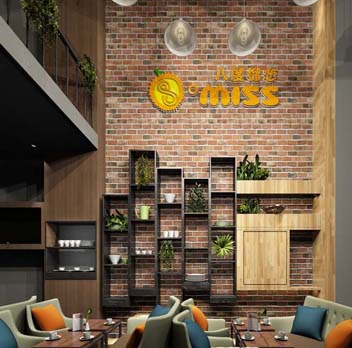 南寧甜品店設(shè)計(jì)一樓前廳,裸露的紅磚墻,木制的裝飾柜,綠色的植物,復(fù)古式吊燈,一切都是這么隨心所欲,來到這里就是放松心情!